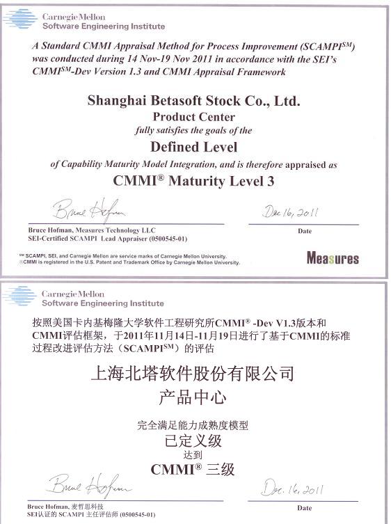 2011年及2016年北塔軟件分別通過(guò)了CMMI3級(jí)及CMMI4級(jí)評(píng)估,標(biāo)志著北塔軟件IT運(yùn)維管理產(chǎn)品的研發(fā)規(guī)范化及 項(xiàng)目管理能力已上升到一個(gè)嶄新高度。